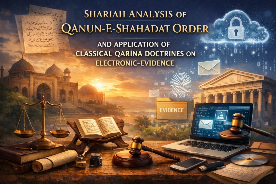 The advent of digital technology has transformed the evidentiary landscape, presenting unique challenges for legal systems grounded in classical doctrines. This article undertakes a Shariah-based analysis of Pakistan’s Qanun-e-Shahadat Order (QSO), 1984, with particular focus on its treatment of electronic evidence. It examines how traditional Islamic principles of proof, especially the classical doctrine of Qarīna (presumptions and inferential evidence), can inform the admissibility, credibility, and weight of electronic records such as emails, digital contracts, and forensic data. By juxtaposing the QSO provisions with classical qarīna concepts, the study identifies convergences and gaps, highlighting areas where contemporary judicial practice may benefit from Shariah-guided reasoning. The article also discusses methodological challenges in interpreting electronic evidence under both statutory and Shariah frameworks, emphasizing principles such as certainty (yaqin), corroboration, and avoidance of unjust assumptions. Through case law analysis and doctrinal comparison, it proposes a harmonized approach that respects the integrity of Islamic evidentiary standards while addressing the technical complexities of digital proof. The findings underscore the potential for classical qarīna doctrines to enrich modern evidentiary evaluation, ensuring justice, reliability, and fairness in the digital age.